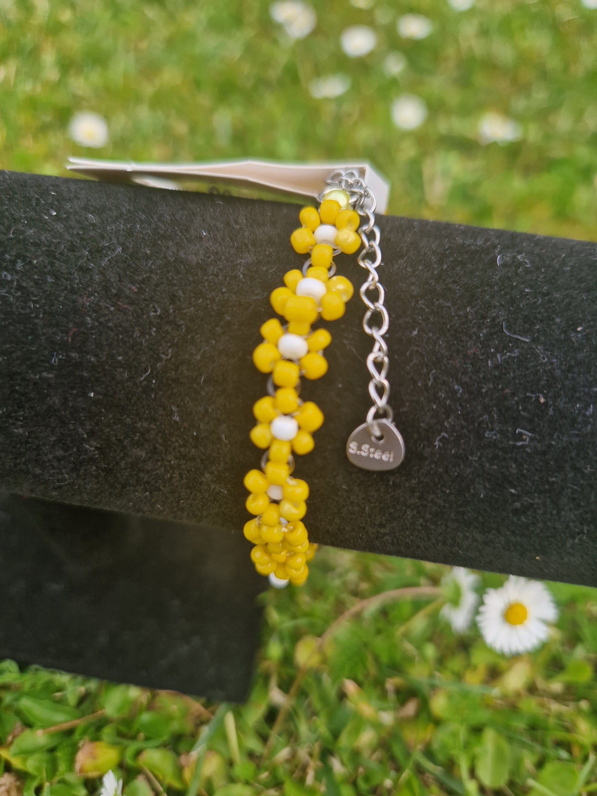 Handmade Yellow Margherita Bracelet with Silver Color Lock