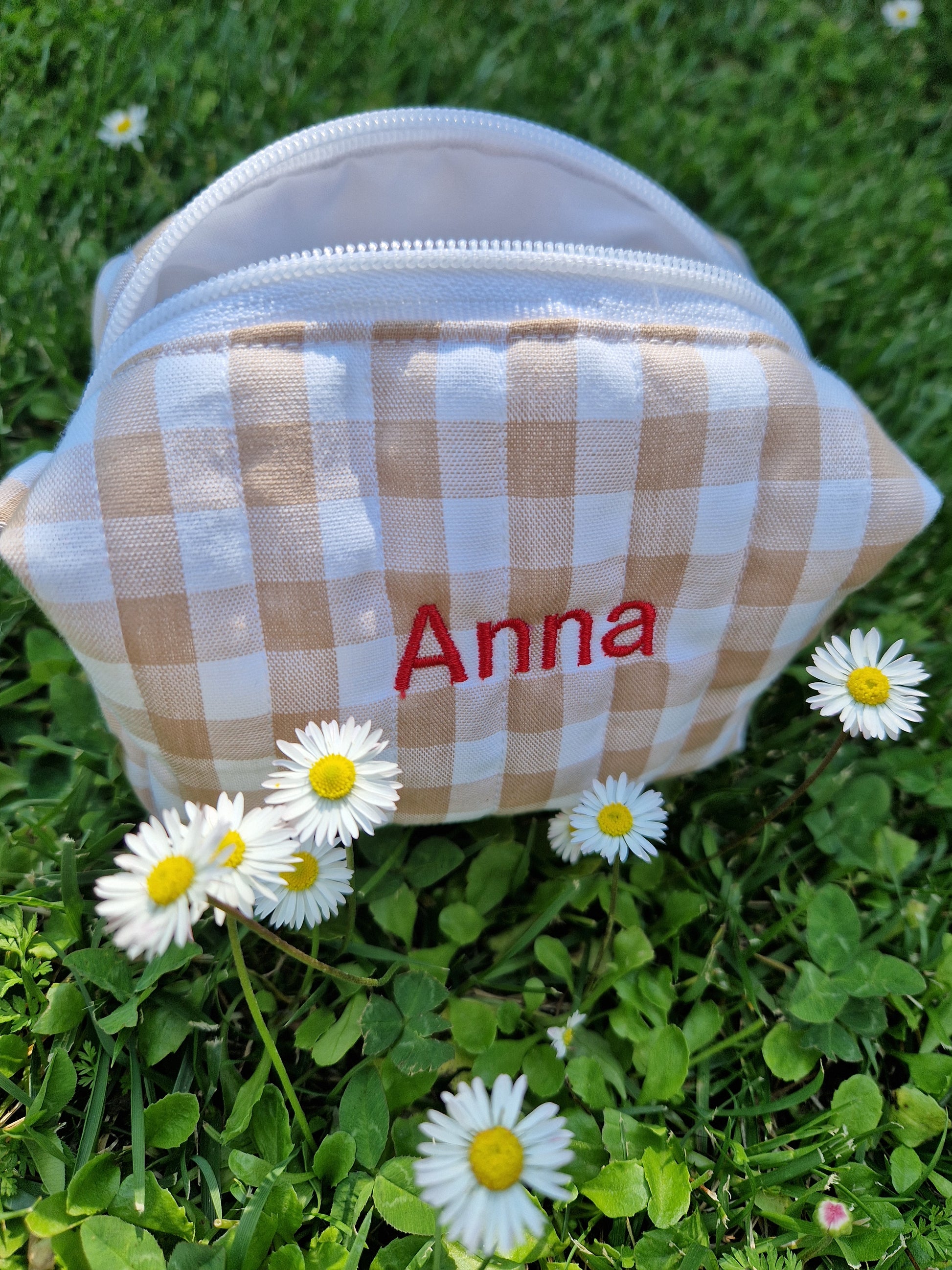 CATERINA Personalized (with Embroidered Name) Iced Coffee Gingham Carry All Bag - MINI