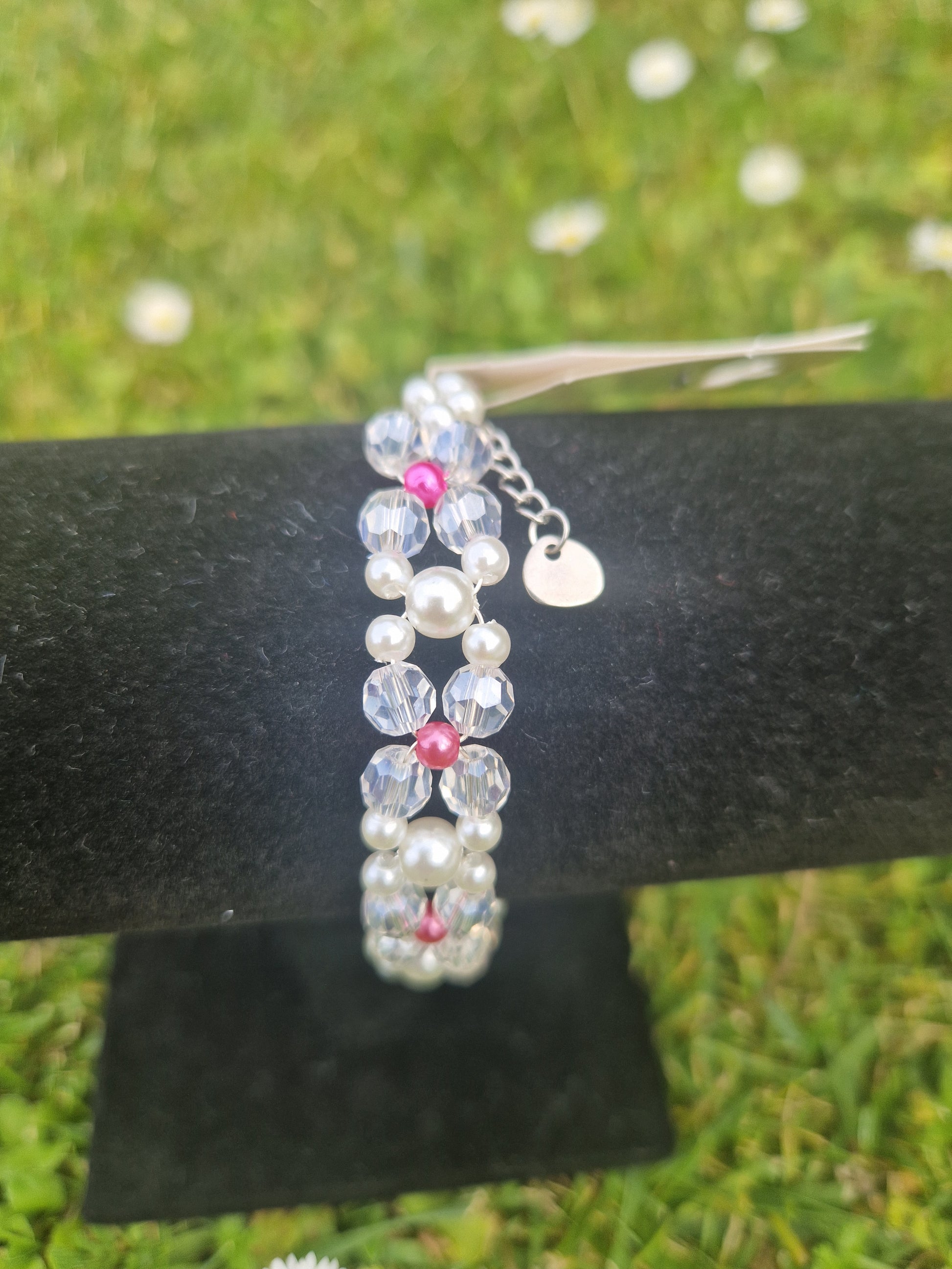Handmade Crystal & Pink Flower Beaded Bracelet with Stainless Lock